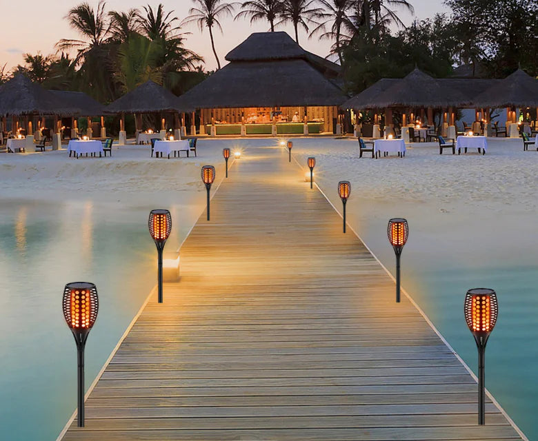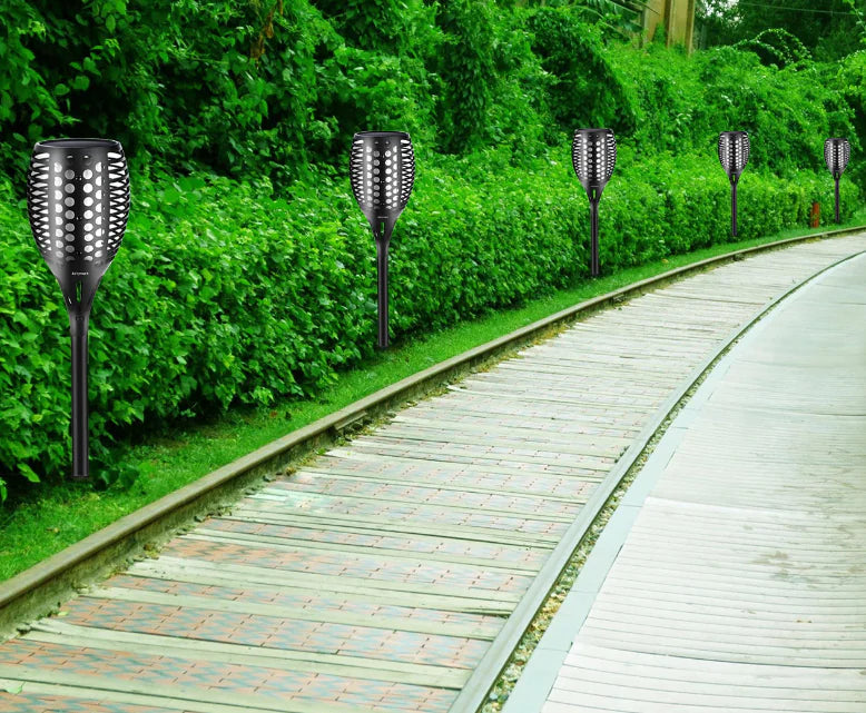 Transform your outdoor spaces with our stunning Solar Flame Lights. Designed to mimic the flickering glow of real flames, these 96 LED landscape lights are perfect for creating a warm, inviting atmosphere in your garden, patio, or driveway.